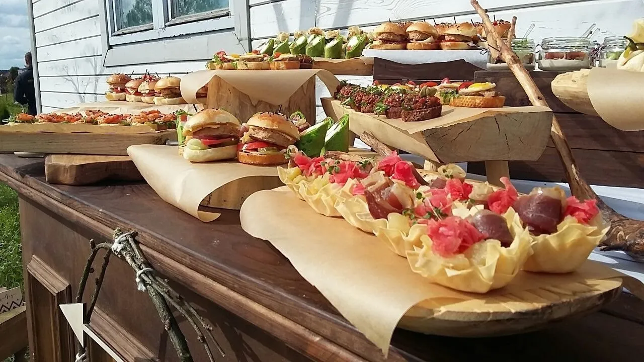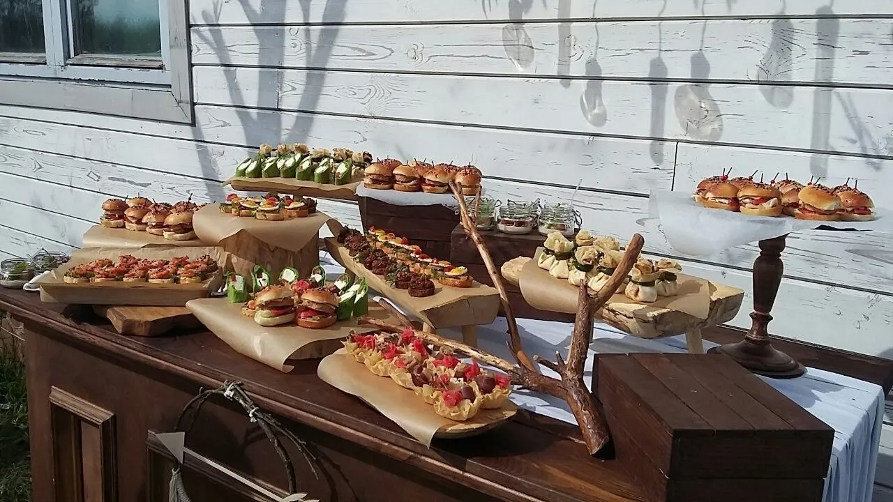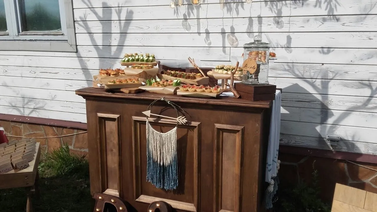 Красивая свадьба в загородном стиле, проведенная в помещении ресторана на берегу озера.