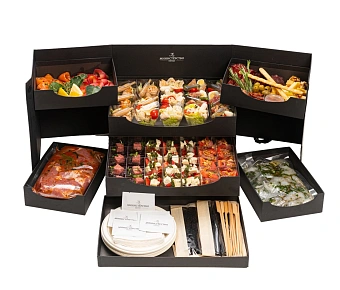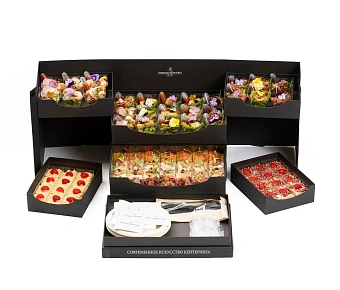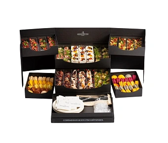Каждый набор уже рассчитан на определённое количество персон, поэтому легко собрать меню без сложных подсчётов. Всё приезжает в фирменной упаковке и готово к подаче — остаётся только красиво разложить на столе. Такой вариант особенно удобен для корпоративов, офисных праздников и семейных встреч, когда важно сэкономить время и быть уверенным в результате.