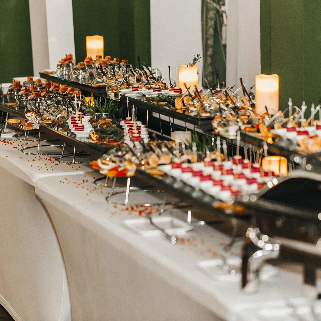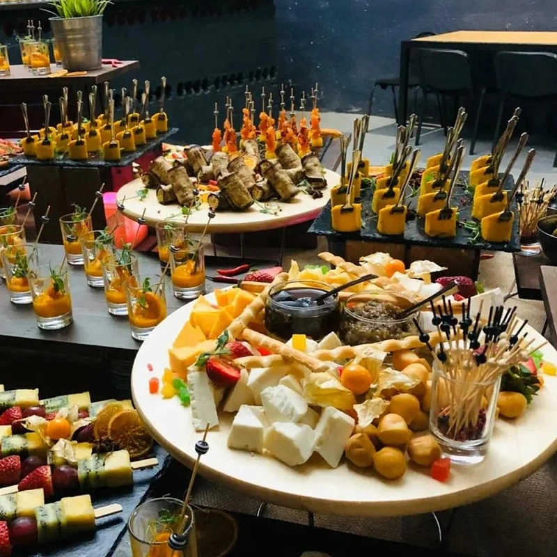 Фуршет — это универсальное решение, когда хочется совместить угощение и свободное общение гостей. Для компании из 30 человек он особенно удобен: не требуется рассадка за столами, еда подаётся в удобном порционном формате, а гости могут выбирать блюда по вкусу. Обслуживание при этом проще и быстрее, чем на классическом банкете. Такой формат одинаково хорош для офисного корпоратива, семейного торжества или делового мероприятия.