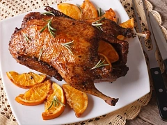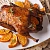 Утка, запеченная целиком, с яблоками и клюквой