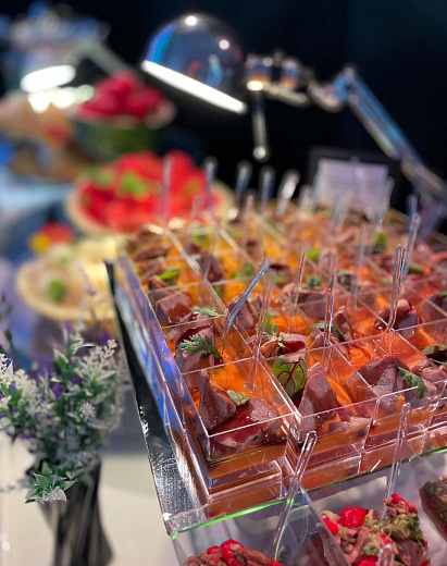 В этом случае меню и формат питания подбираются с учетом количества гостей, площадки и концепции мероприятия.