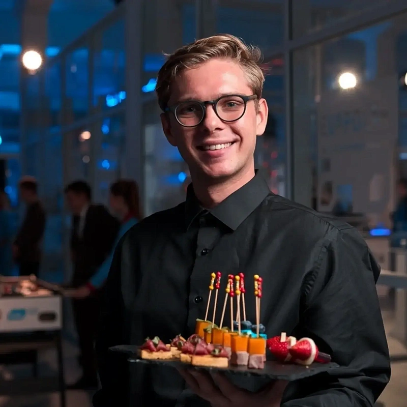 На корпоративных мероприятиях важно, чтобы подача была удобной в движении, а сервис — незаметным и профессиональным. Мы используем форматы, которые хорошо работают именно в офисах и бизнес-пространствах: мобильные станции, компактные линии, порционные закуски и чёткий регламент обслуживания. Такой подход гарантирует ровный ритм мероприятия и отсутствие организационных сбоев — всё проходит спокойно, аккуратно и по плану.