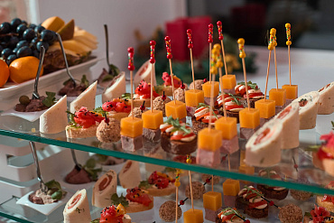 Мы полностью закрываем вопрос питания: привозим кухню, оборудование, команду поваров и официантов. Формат подбирается под сценарий — фуршет, банкет, коктейльная вечеринка, кофе-брейк или смешанный сценарий.
