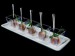 - Праздничное меню. Наши шеф-повара готовят блюда, которые радуют не только вкусом, но и подачей: мини-рулетики, тарталетки, канапе и веррины, мясные и рыбные деликатесы, салаты и десерты. В меню есть вегетарианские, постные и безглютеновые позиции.