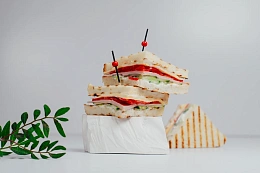 Вегетарианский мини-сэндвич с соусом "Песто", томатами и листьями салата