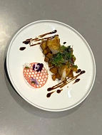 перепелиным яичком, кенийской фасолью и бэби-картофелем