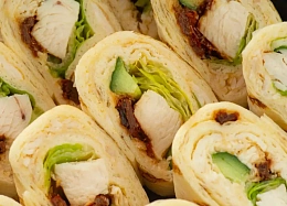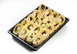 С ростбифом и вялеными томатами, куриным филе, тигровыми креветками и маринованным дайконом