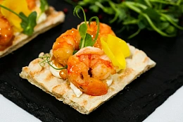Римская мини-брускетта с тигровой креветкой