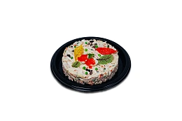 Состав: Свекла запеченная, картофель отварной, филе Сельди с/с в масле, морковь, яйцо куриное, майонез домашний, лук сибулет.