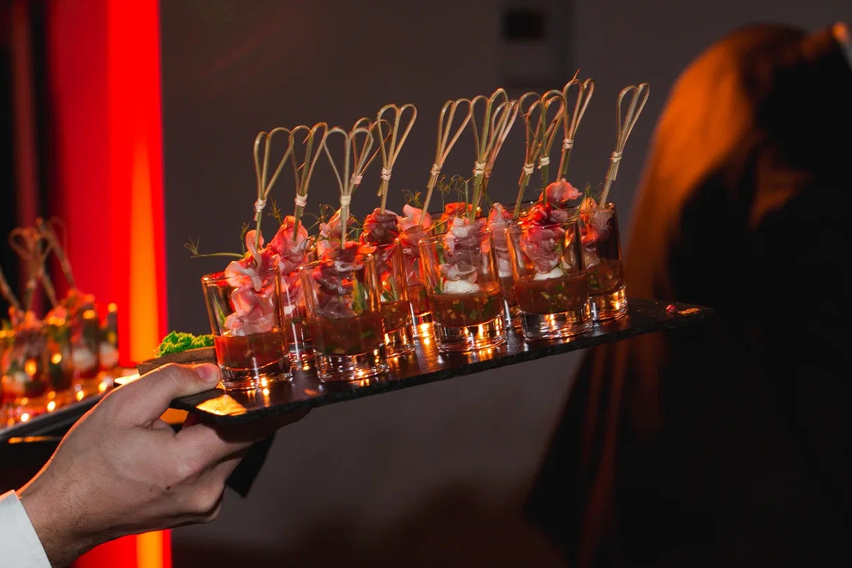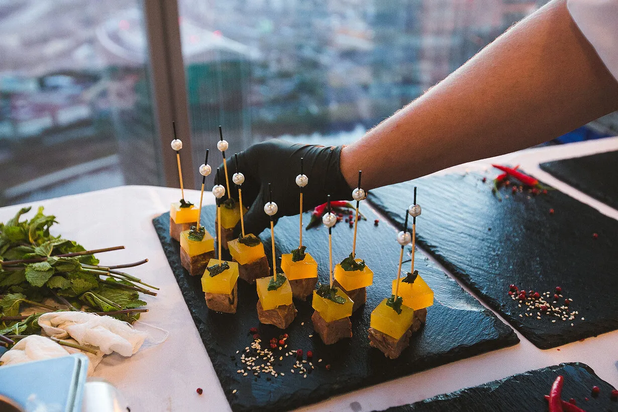 Инновации и современные решения. Мы активно внедряем новейшие технологии и тренды в кейтеринге, чтобы ваши мероприятия были на шаг впереди. От интерактивных станций до уникальных кулинарных шоу — мы делаем ваши события незабываемыми.