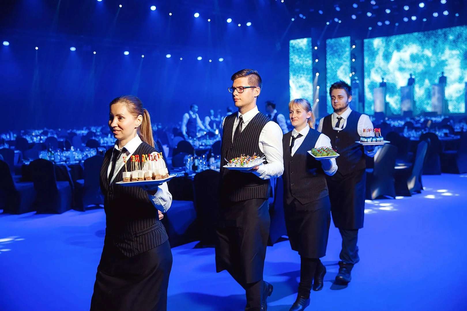 Экспертная команда. Шеф-повара, менеджеры проектов, координаторы, официанты, технический персонал — каждый участник команды отвечает за свой участок работы, обеспечивая безупречный результат.