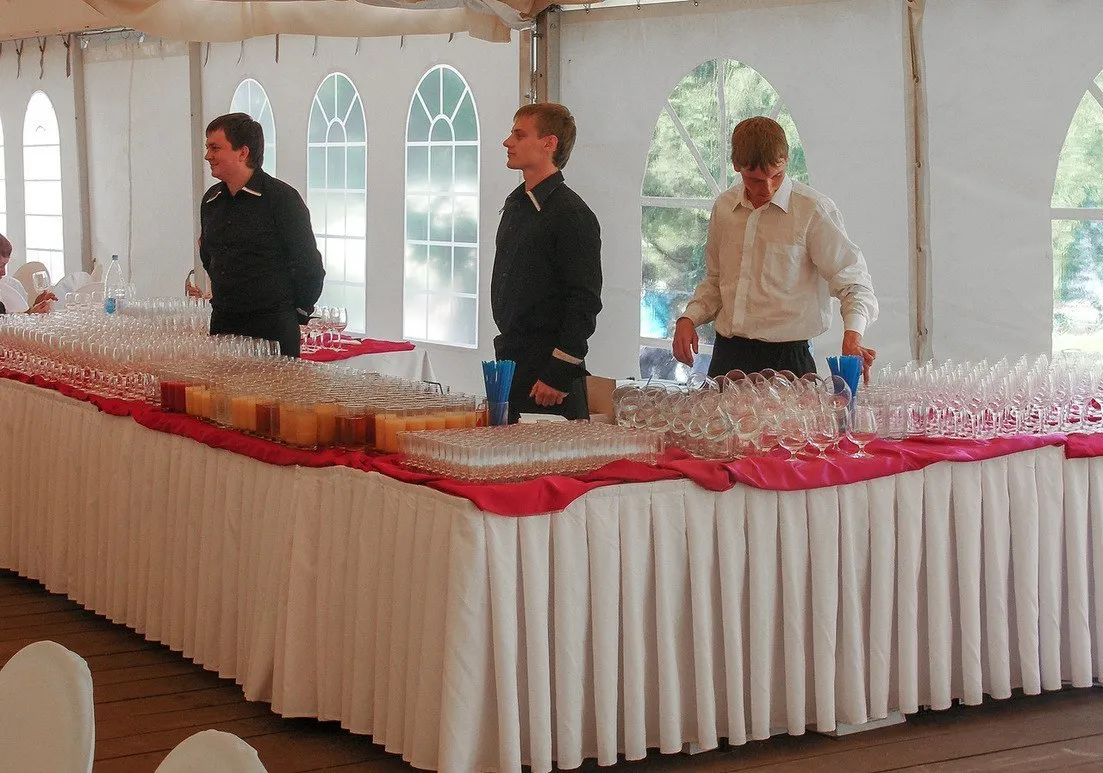 Меню в формате барбекю, рассадка гостей в шатре на берегу Клязьминского водохранилища.