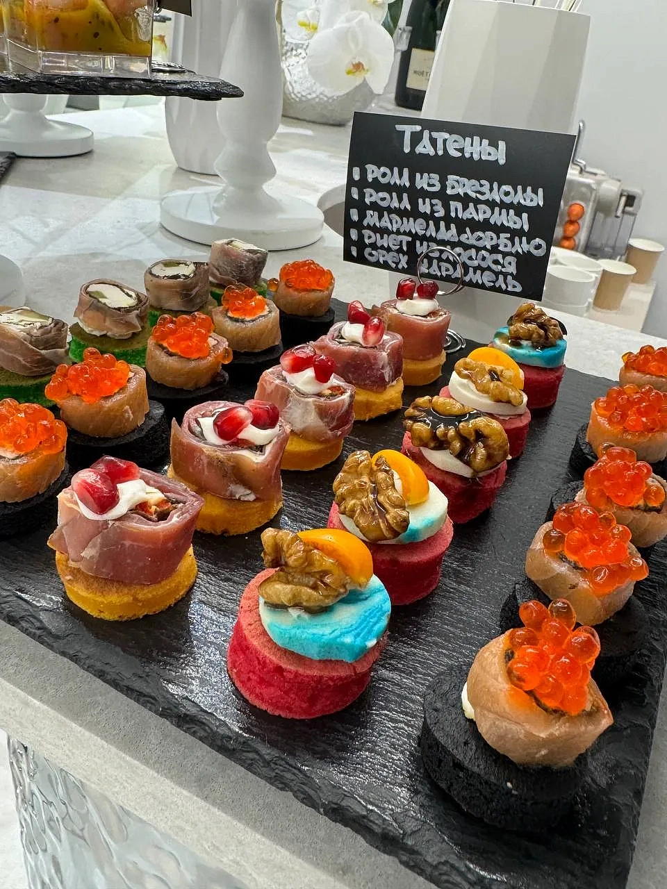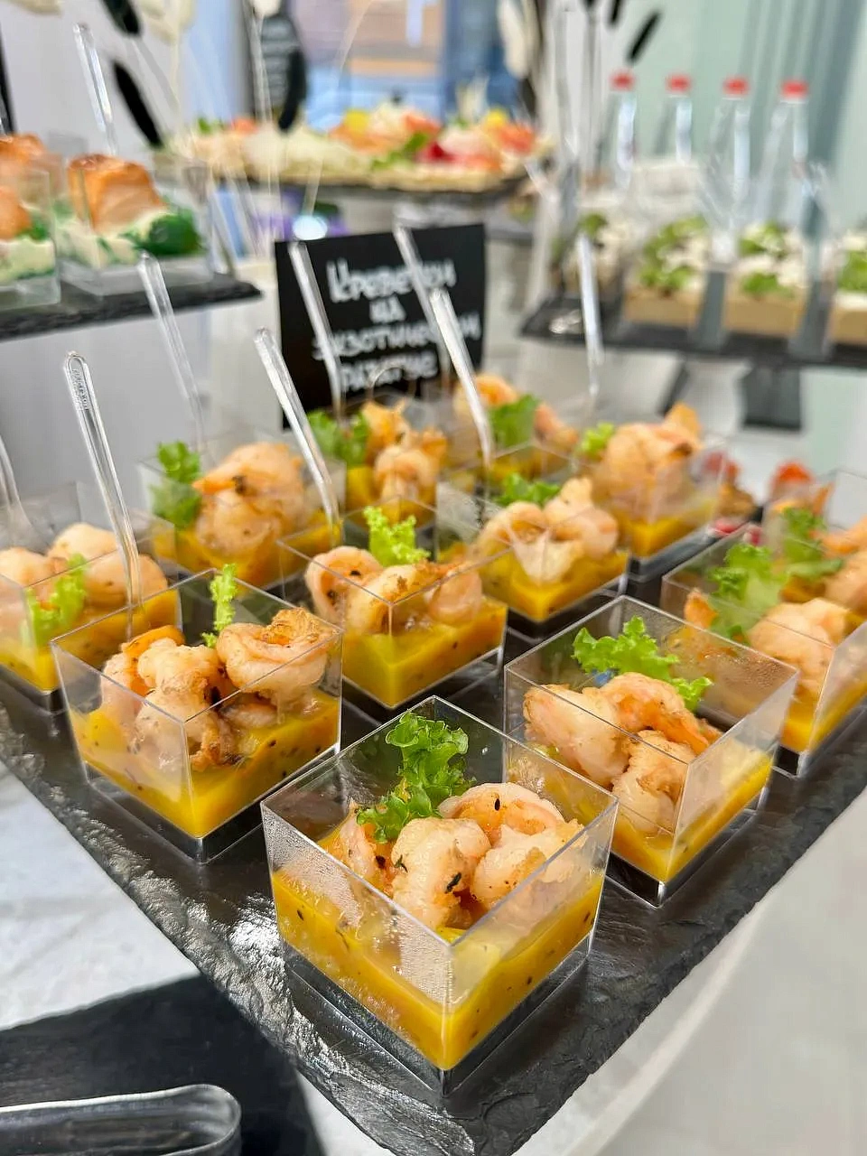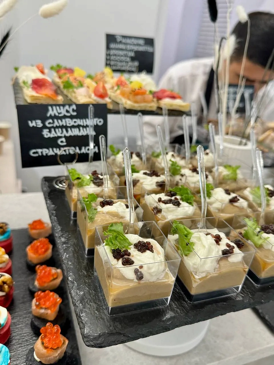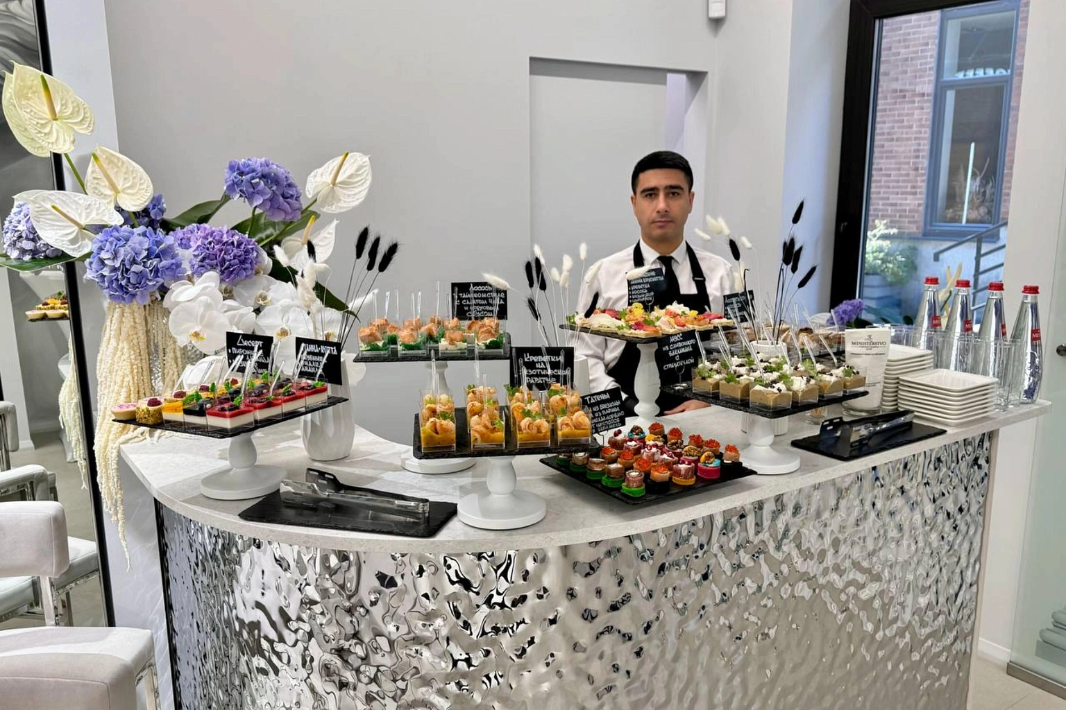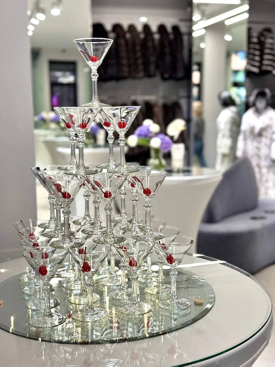 Запоминающиеся фуршетные закуски и прекрасная пирамида из бокалов для гостей