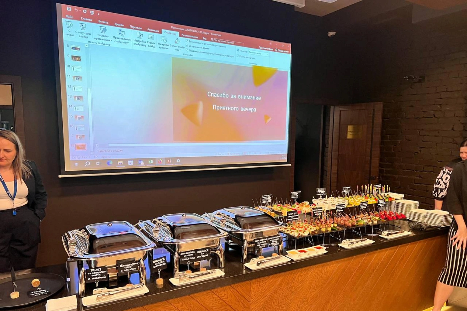 Мероприятие для клиентов с разнообразными закусками и десертами.