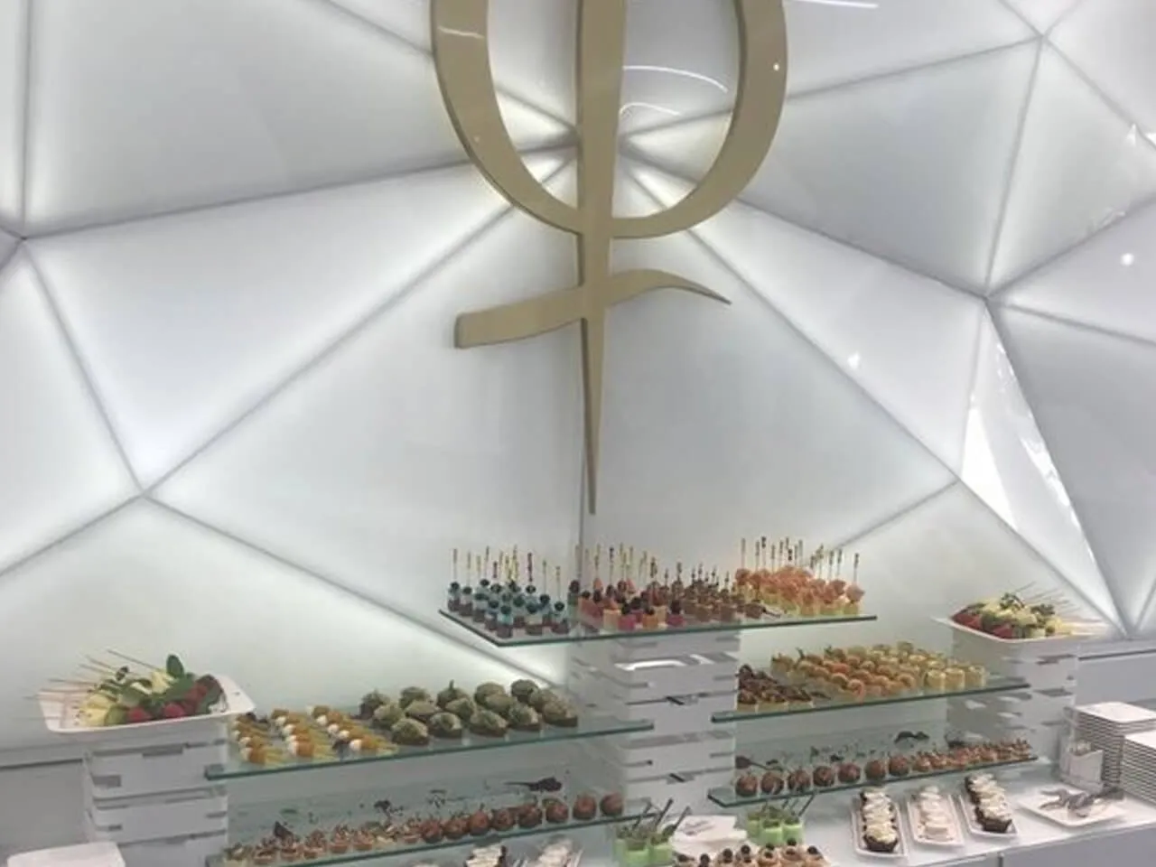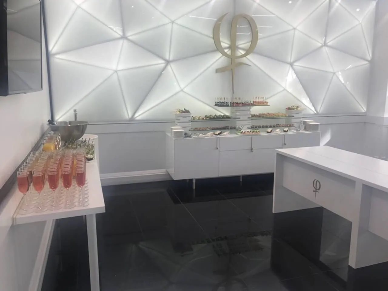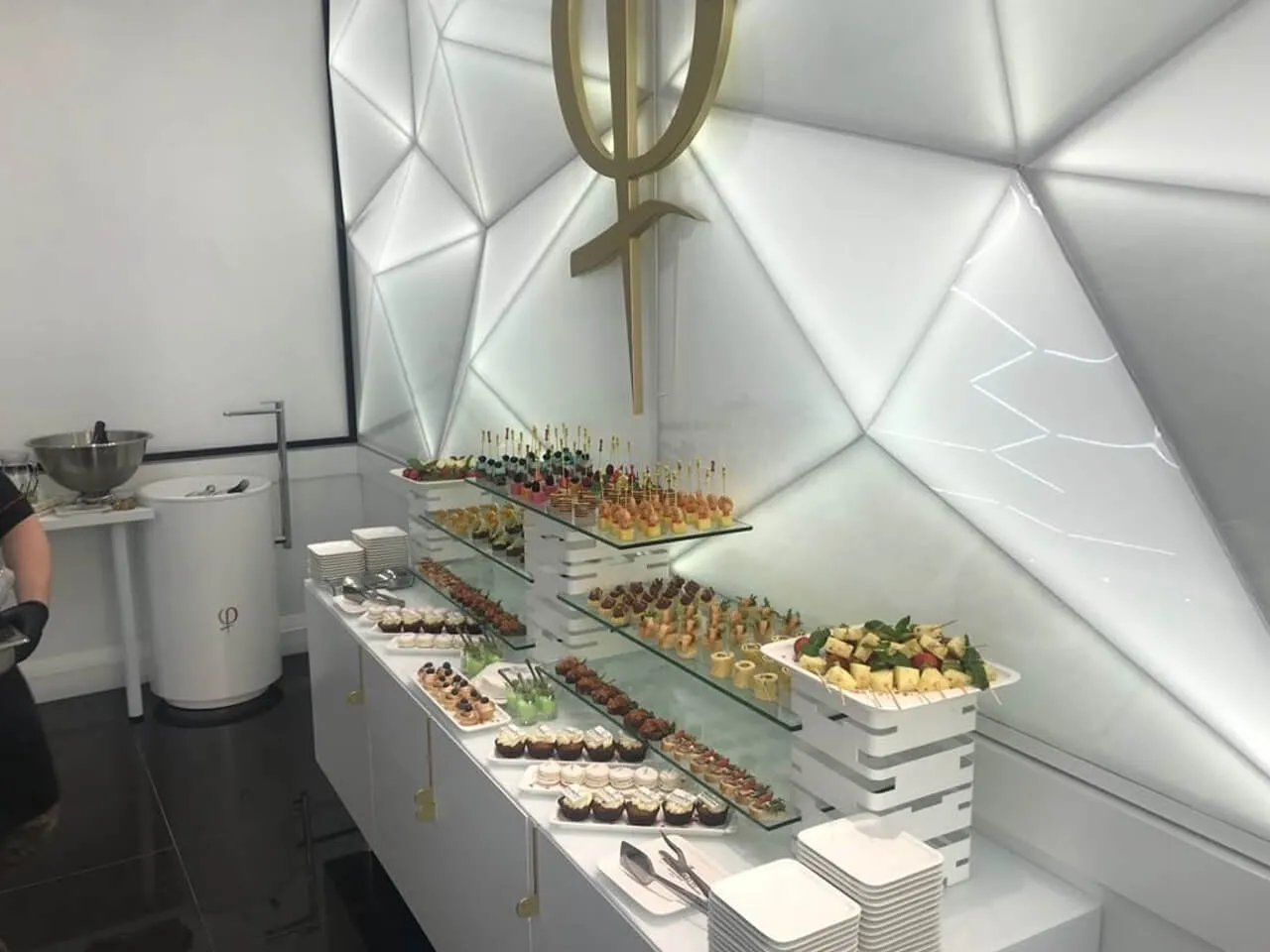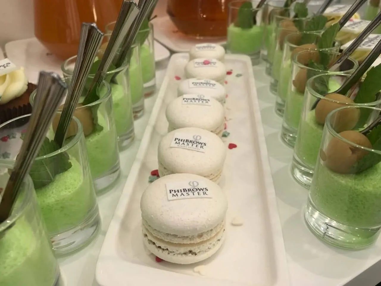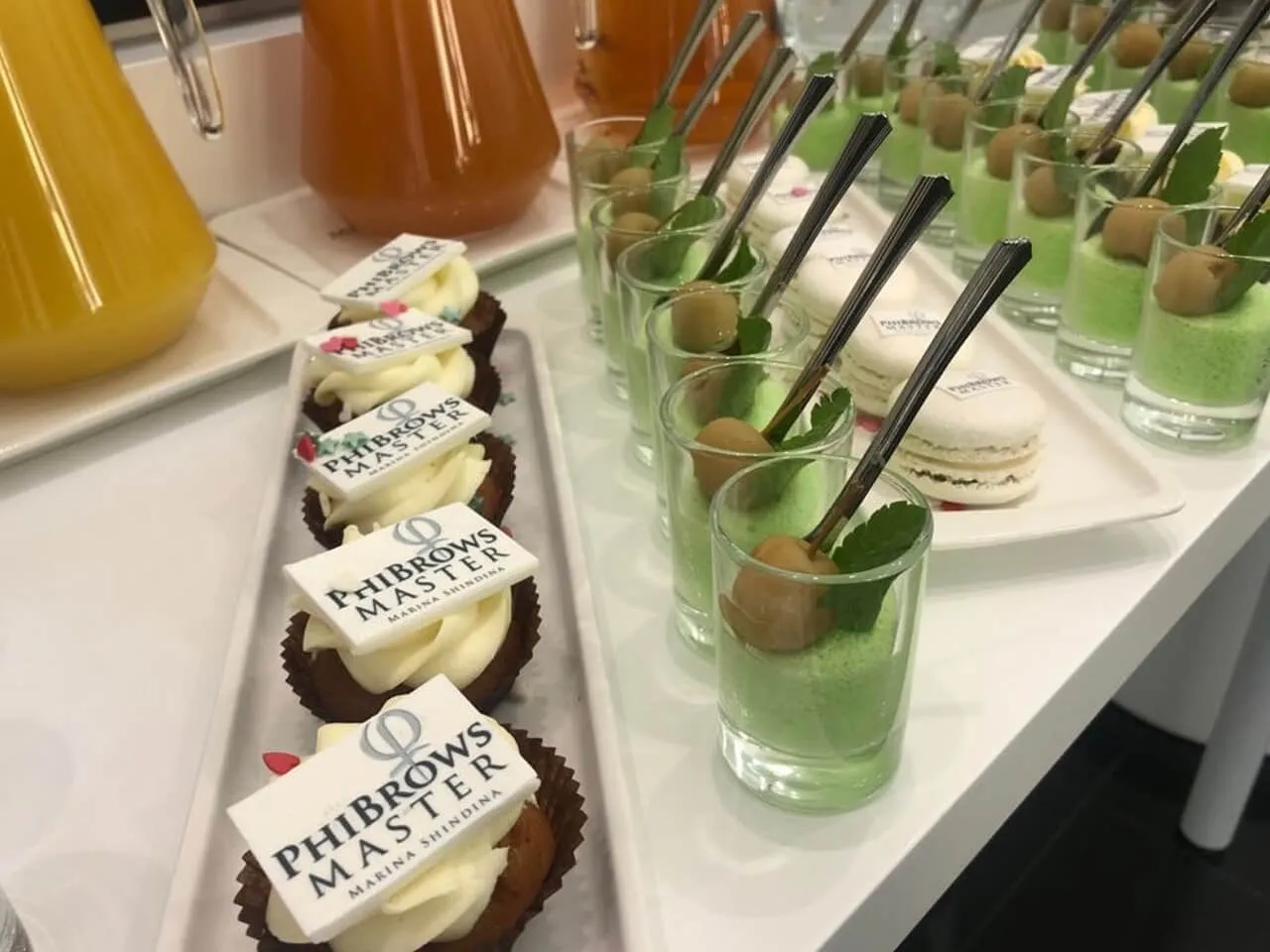 Фуршет с холодными закусками и брендированными десертами на открытии салона красоты PhiBrow Master.