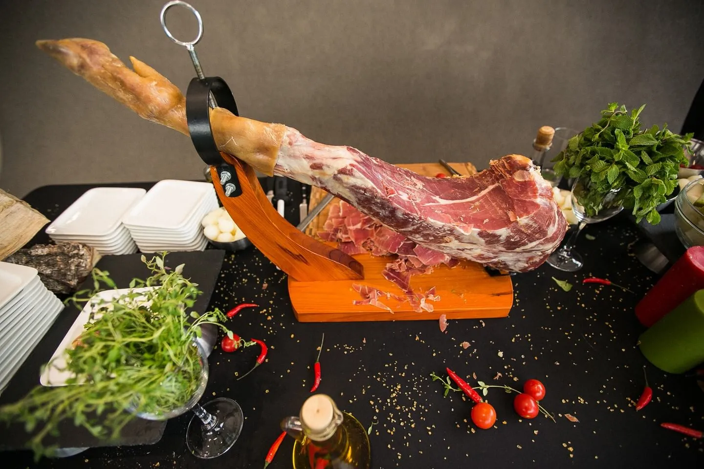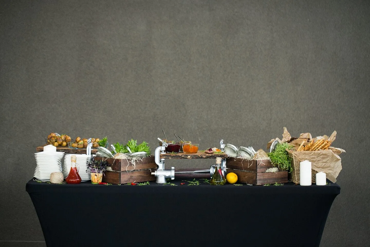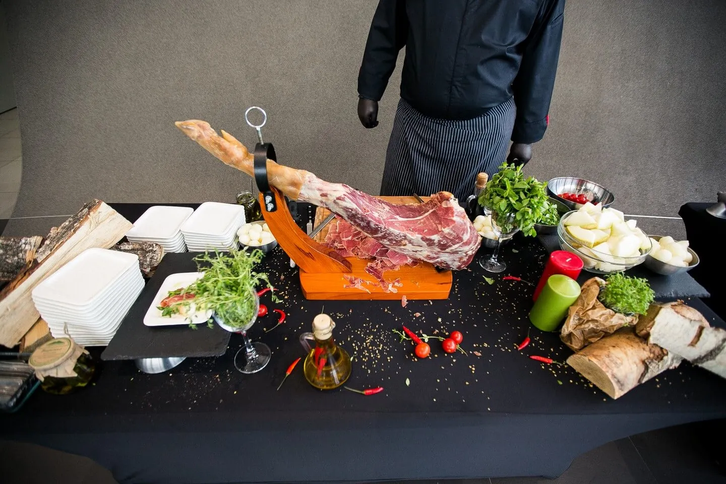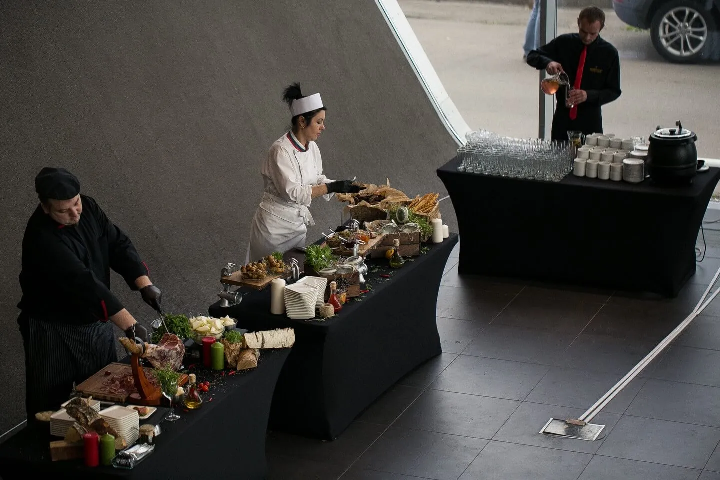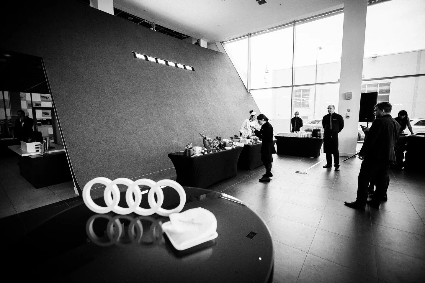 Фуршет со станциями демонстрационного приготовления в автосалоне Audi Центр Восток, для гостей мероприятия AudiОсень.