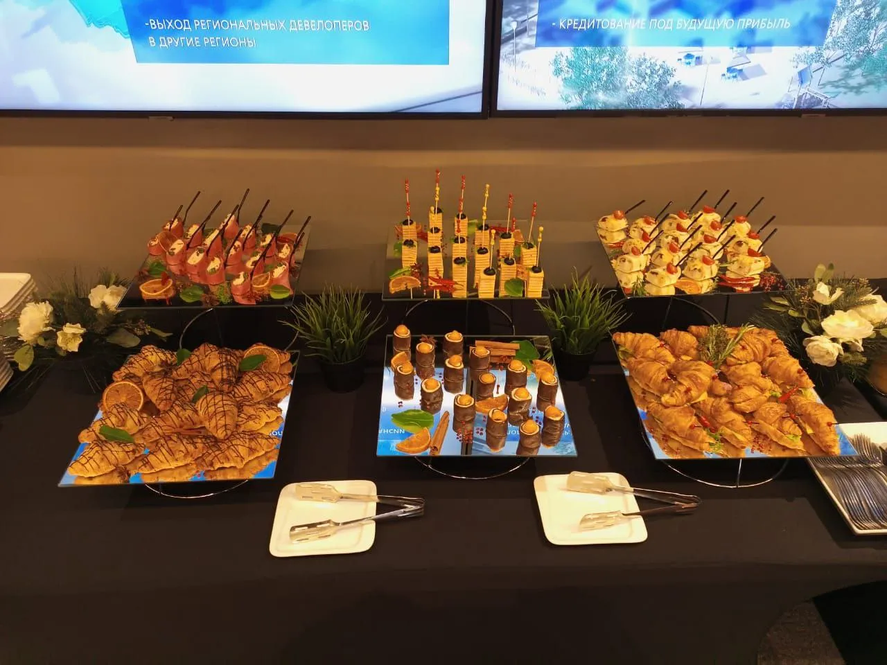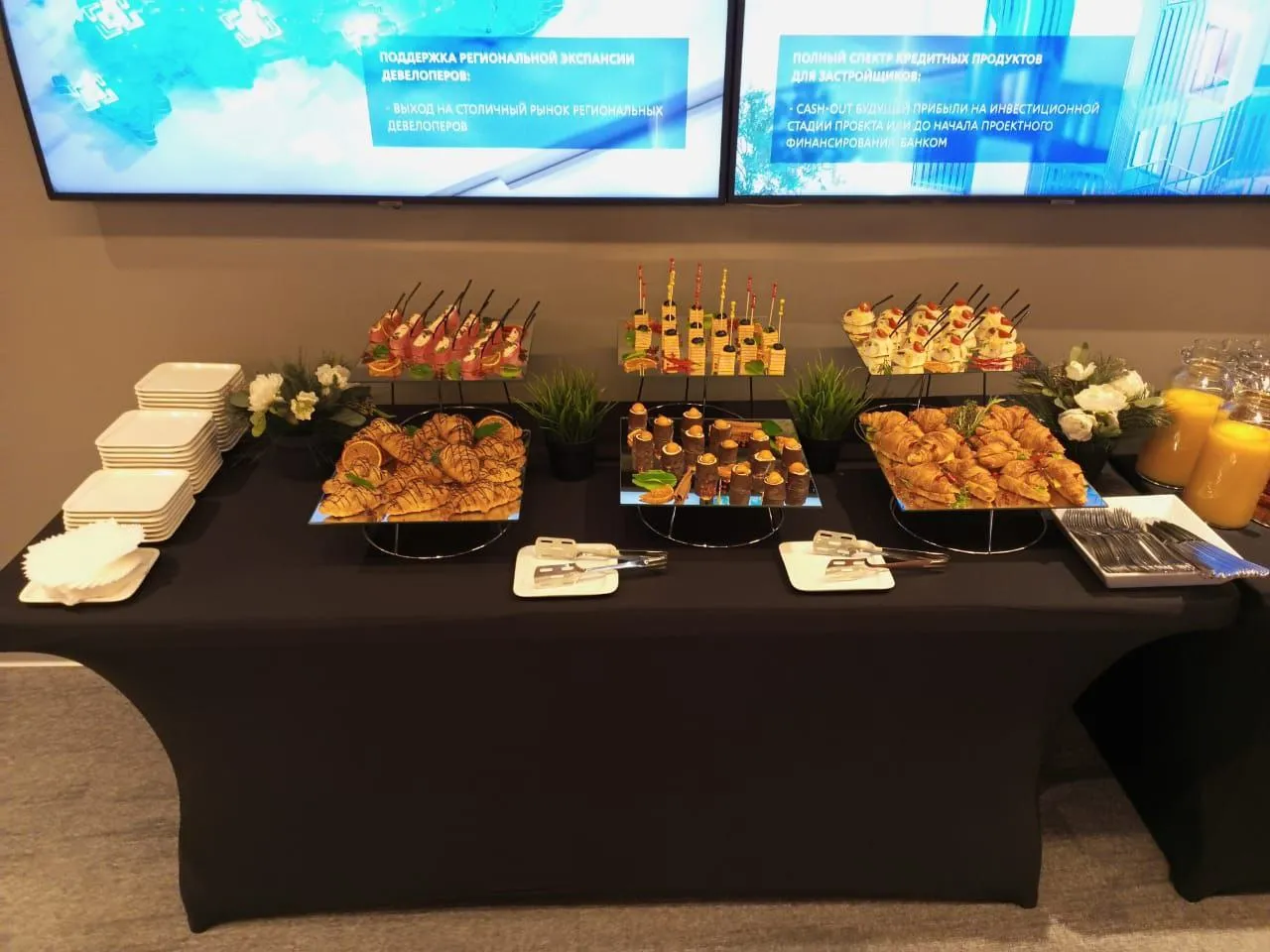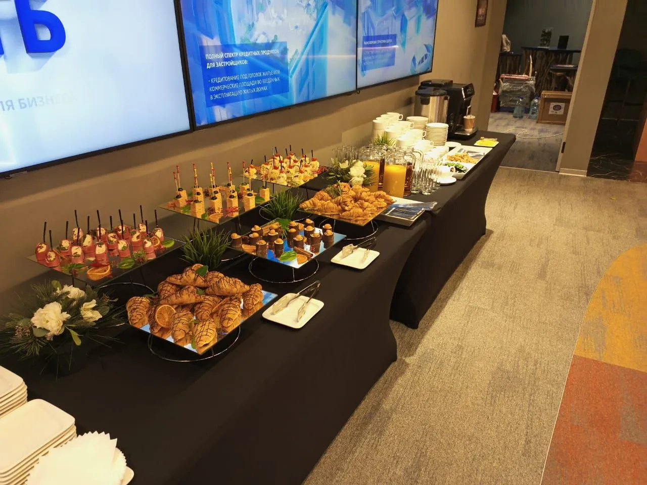 Небольшие кофе-брейки на деловой встрече. Пространство из двух зон, одна - деловая, другая - для перекуса и отдыха. Все прошло отлично!