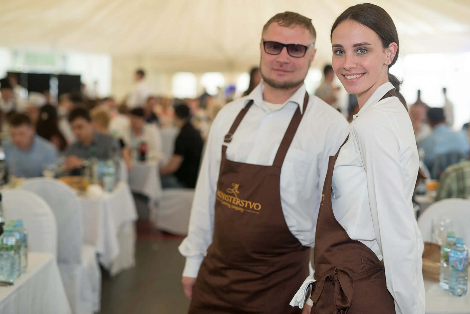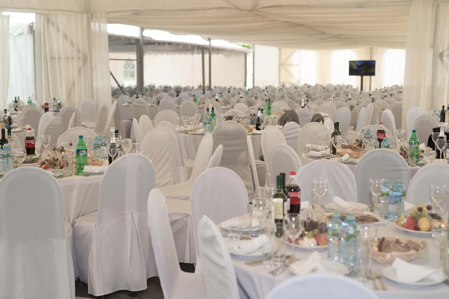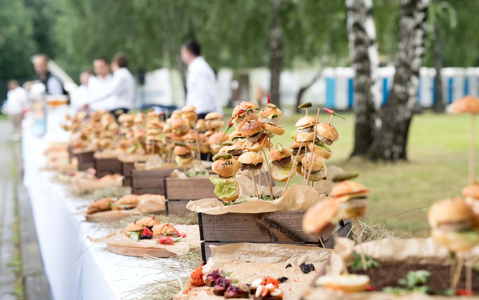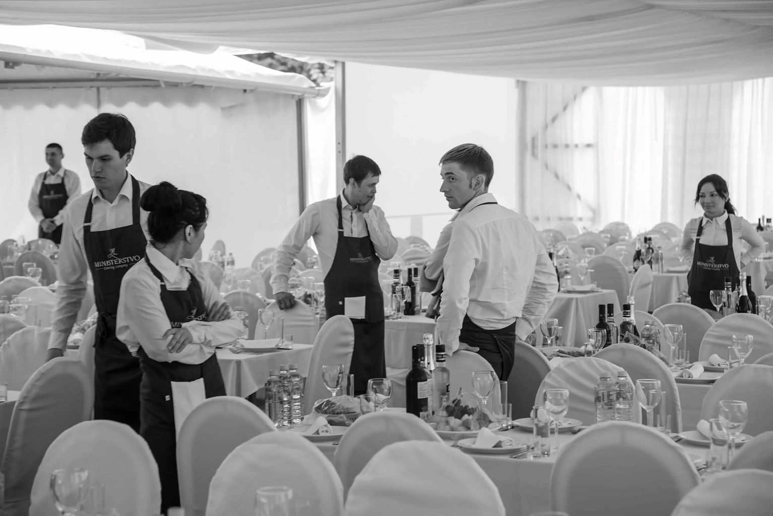 Летнее корпоративное мероприятия в яхт-клубе «Водник» и одновременно празднование Дня строителя. Фуршет и банкет на 800 человек.