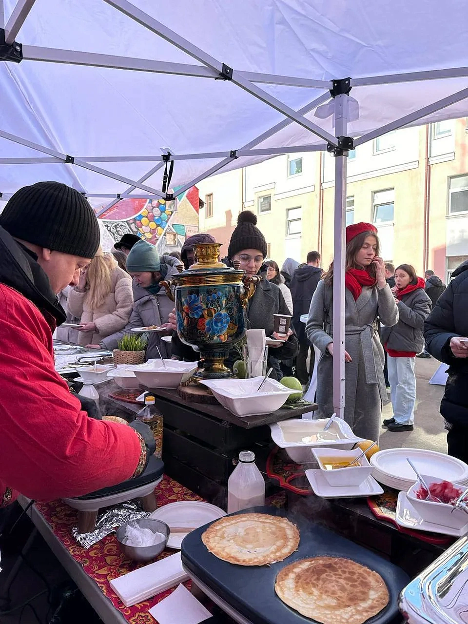 Корпоративная Масленица для сотрудников офисов. В программе блинчики от Министерство кейтеринг, Русский бар с ассортиментом настоек и активности от организатора.