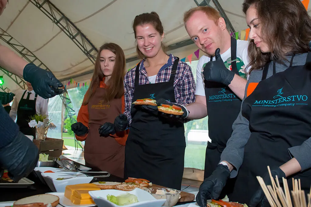 На корпоративном Тимбилдинге мы организовали кулинарный мастер класс в формате BBQ для 100 сотрудников Johnson & Johnson.