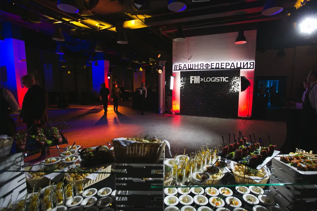 Новогодний фуршет для французской компании FM Logistic. Для мероприятия была выбрана одна из самых эффектных площадок Москвы.