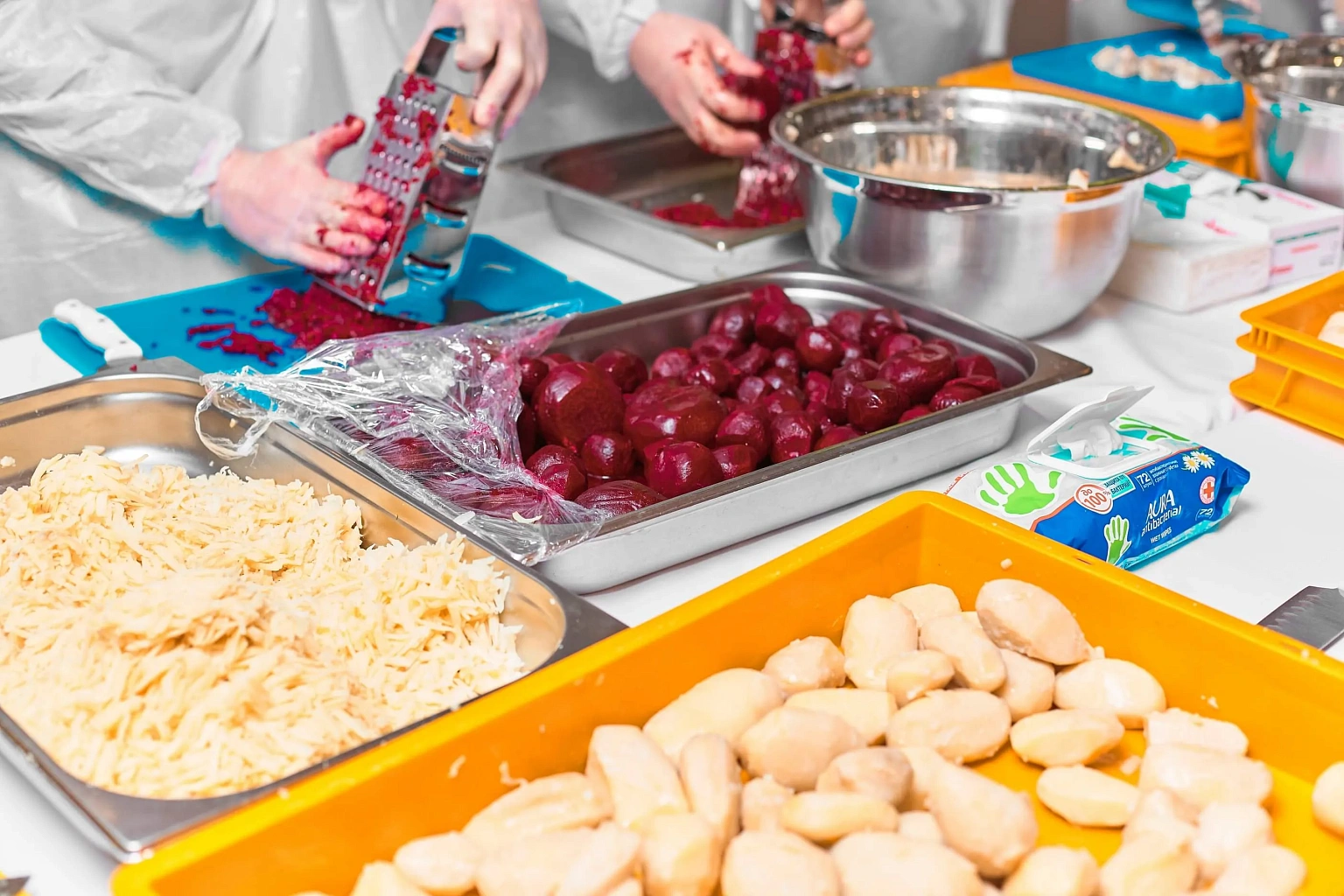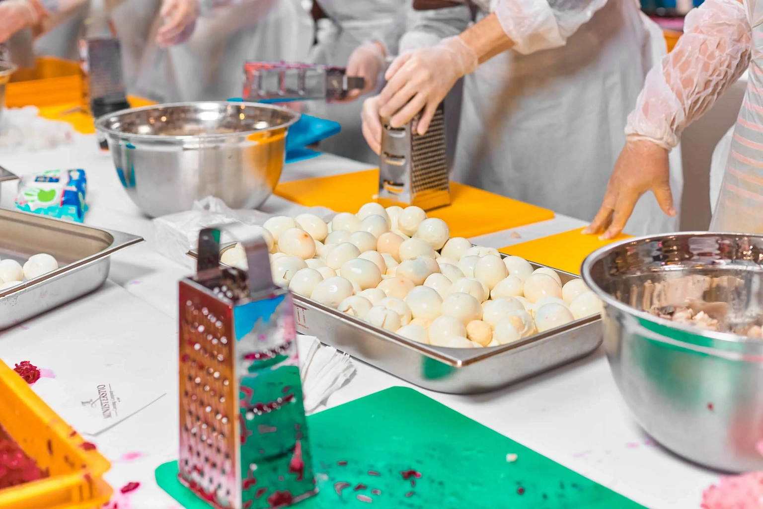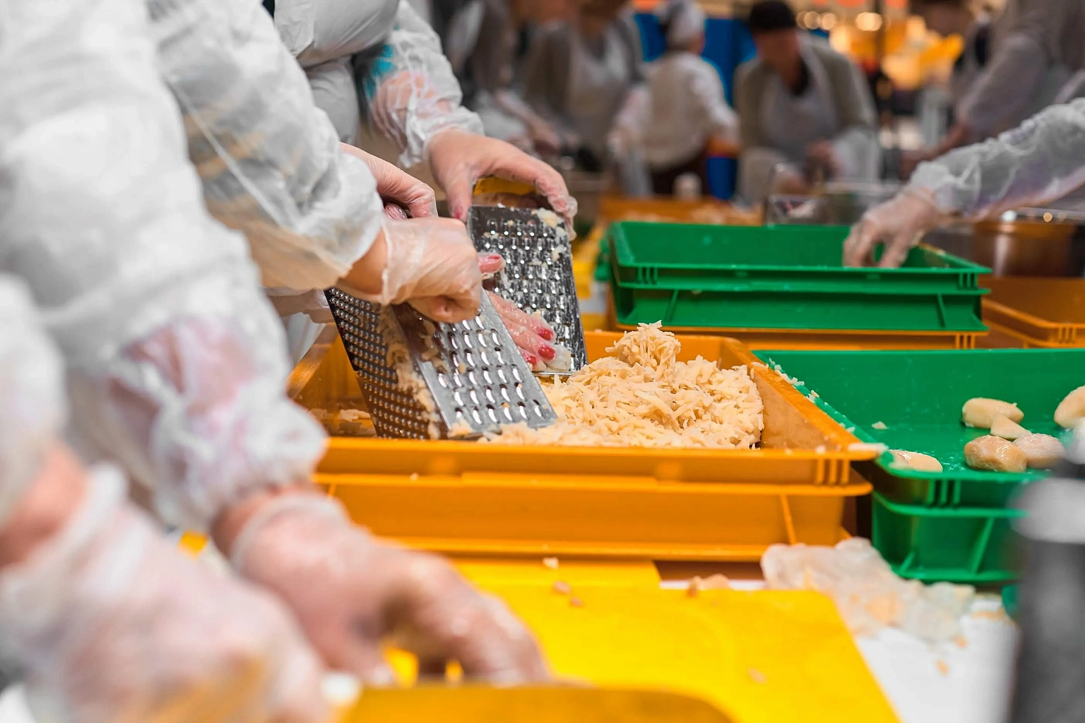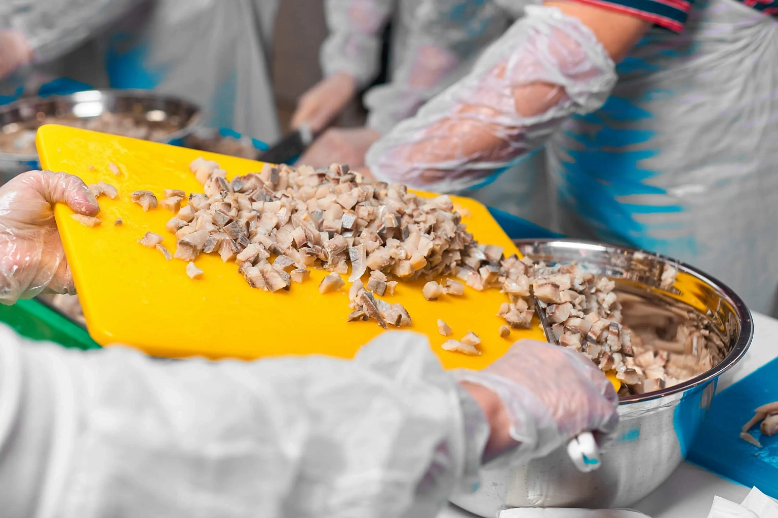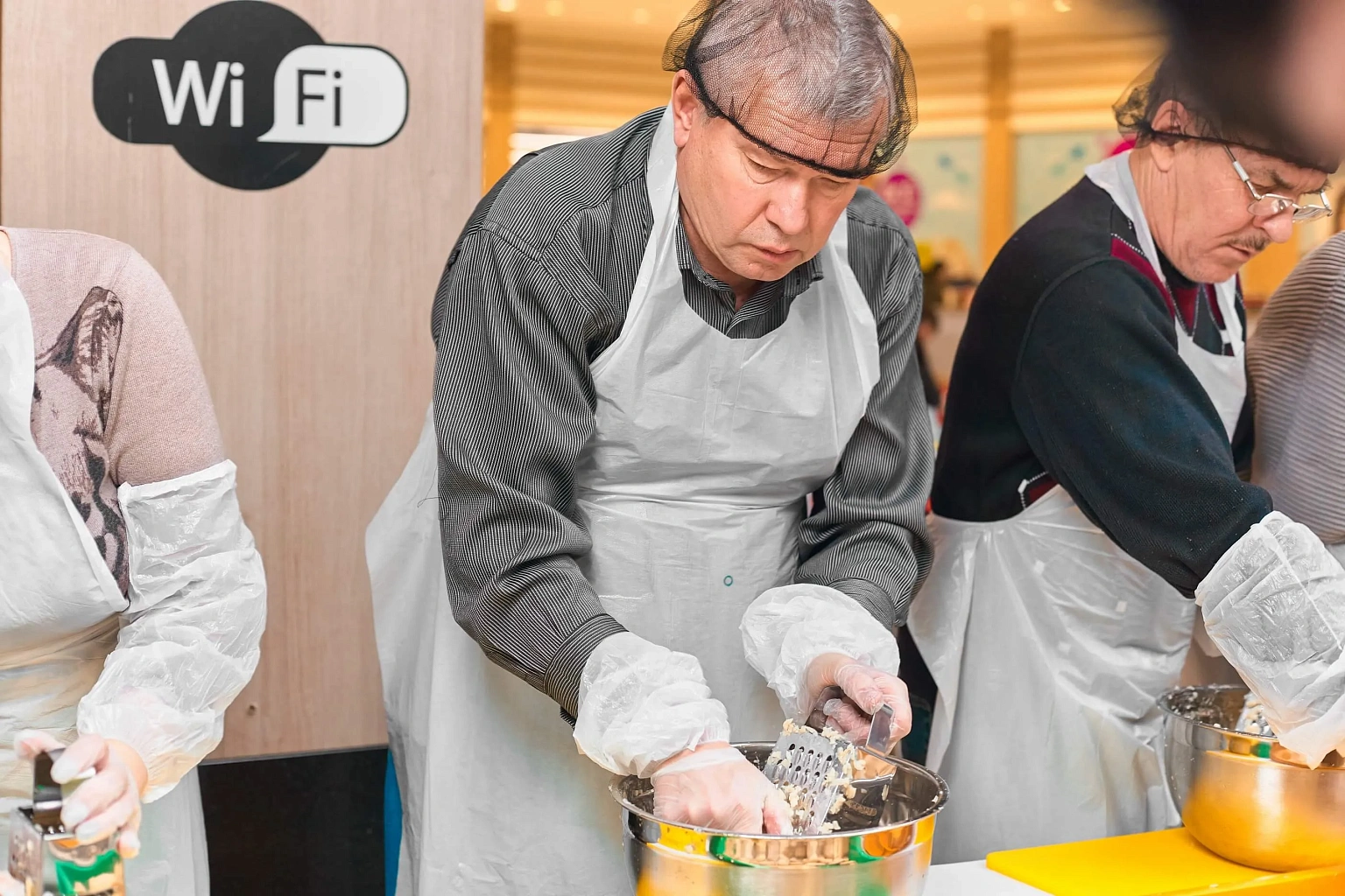 Рекордное приготовление 350 кг «Сельди под шубой» с помощью помощников из числа посетителей Торгового центра.