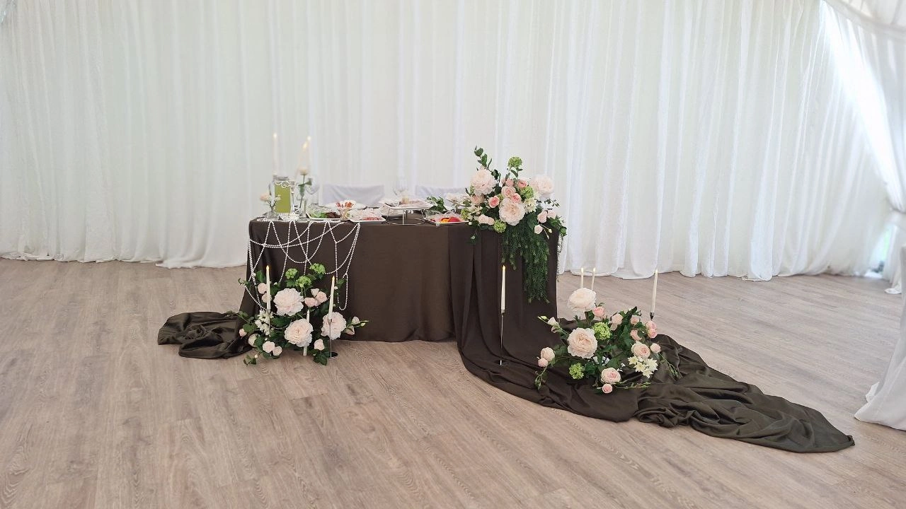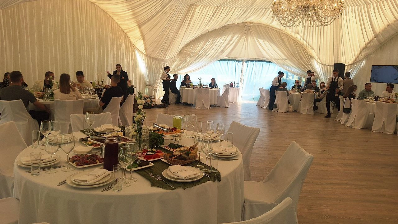 Мы предоставили кейтеринг под ключ с великолепной Welcome зоной у колон главного дома и изысканный банкет в белоснежном шатре. Наше авторское меню от Шеф-повара и безупречное обслуживание высококвалифицированного персонала превратили свадебный банкет в красивую сказку от первых тостов до торжественного разрезания свадебного торта. Гости в восторге от праздника, а мы - от счастливых улыбок молодых.