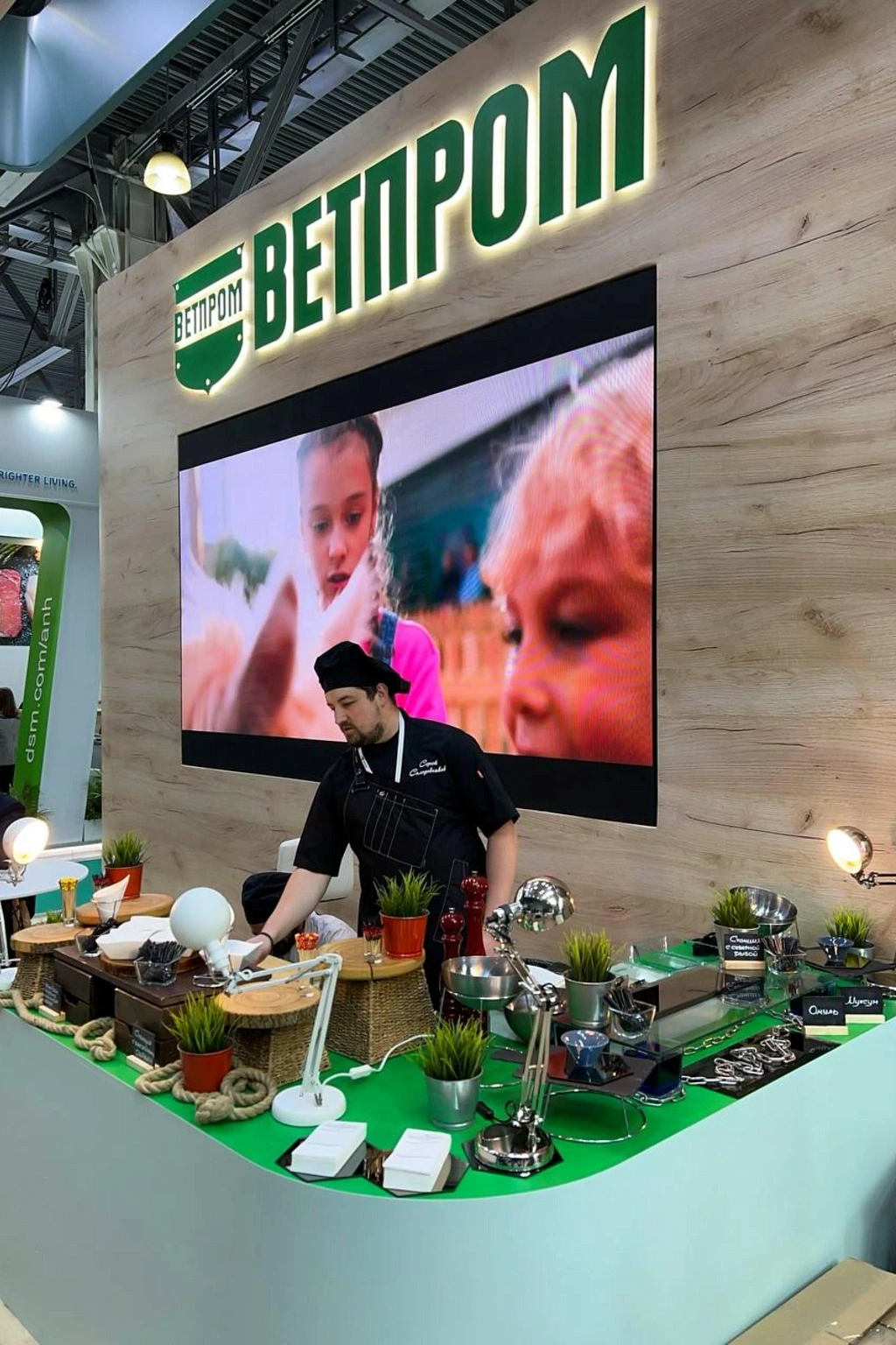 Компании ВетПром приняла участие на выставке КОРМ-ВЕТ 2023 От нас были две стилизовано оформленные станции: анимационная станция с благородными сырами и анимационная станция со строганиной из северных рыб.