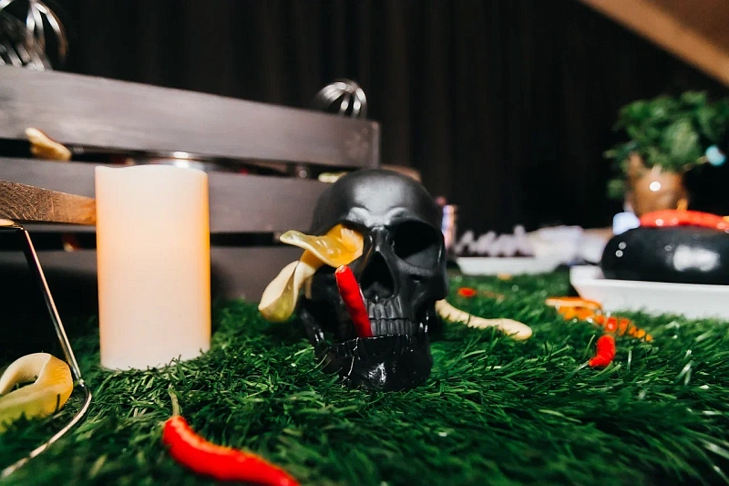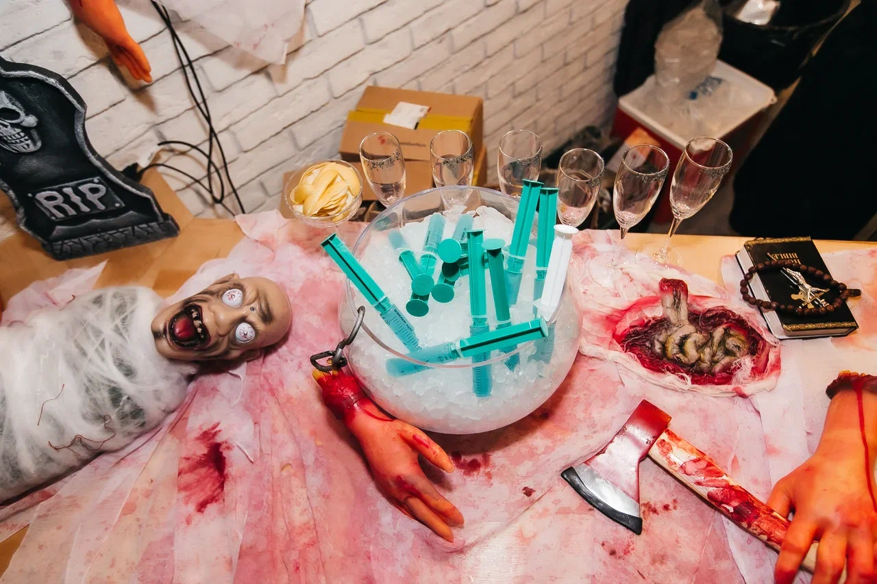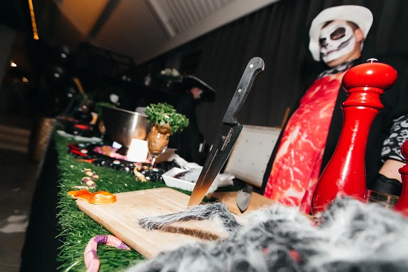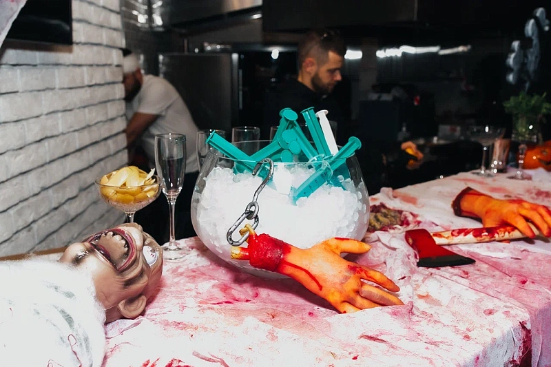 Дополните вечеринку анимационными станциями по приготовлению блюд, где повара будут готовить угощения в прямом эфире. Это могут быть станции с выпеканием пиццы-мумий, созданием кровавых коктейлей или изготовлением десертов в виде монстров. Также можно организовать тематический бар с необычными напитками, чтобы создать дополнительное развлечение для гостей.