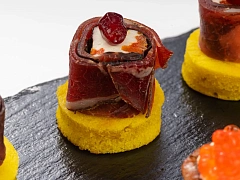 Заливное — еще одна традиционная новогодняя закуска русского стола, популярности которой мы обязаны известному советскому фильму. Заливное в форме золотистой рыбки от нашего шеф-повара захотят попробовать даже те, кто не питал интереса к этому блюду раньше. Не менее аппетитно выглядит заливное из трех видов мяса. Также мы предлагаем заказать порционное заливное, сервированное в прозрачных шотах, что уместно при организации новогоднего фуршета.