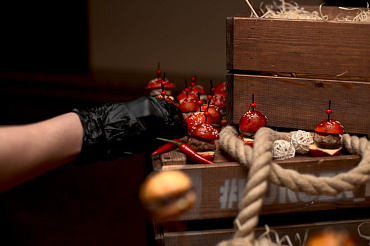 Анимационная food станция – это гастрономическое шоу по приготовлению великолепных праздничных блюд прямо в офисе. Повара готовят блюда на глазах ваших восхищенных коллег, после чего организуют для них индивидуальную подачу свежеприготовленного шедевра.