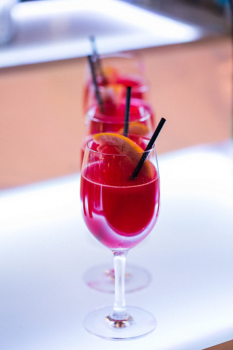 Коктейльную карту для вашего новогоднего мероприятия помогут составить наши опытные менеджеры. В нее можно включить алкогольные и безалкогольные коктейли, смузи, пряный рождественский глинтвейн, детские напитки, кофе, чай и прочие алкогольные и безалкогольные напитки.