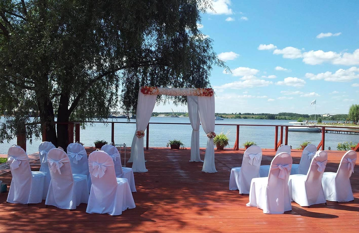 огромная веранда расположена прямо у воды, площадь веранды 400 м2;