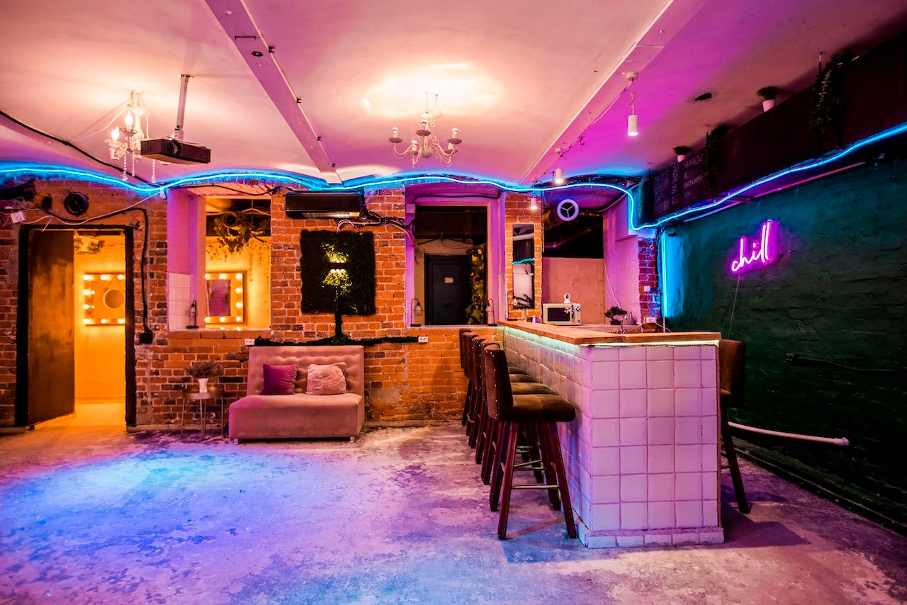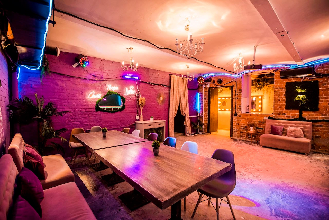 Уютный кирпичный лофт вместимостью до 45 человек с площадью в 110 м2. Для дня рождения, вечеринки, проведения детского праздника, проведения свадьбы или тренинга с удобной входной зоной.
