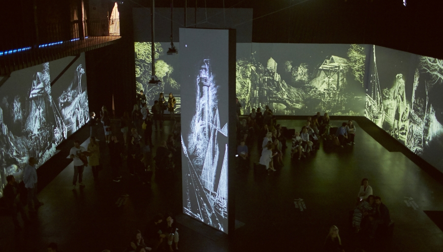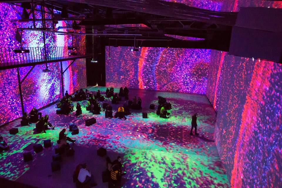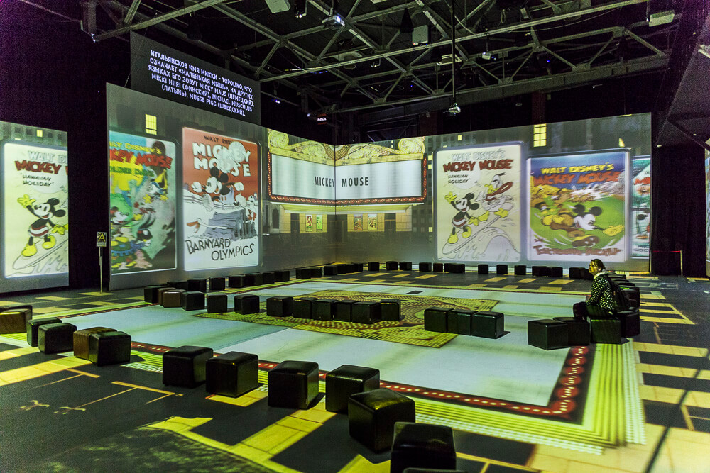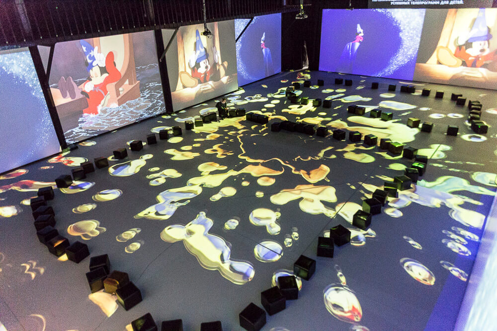 Двухуровневый многоэкранный зал, оборудованный ультрасовременным мультимедийным оборудованием, обеспечивающий 3D-эффект погружения в мультимедийный контент, c дополнительными функциональными помещениями общей площадью 600 кв.м.