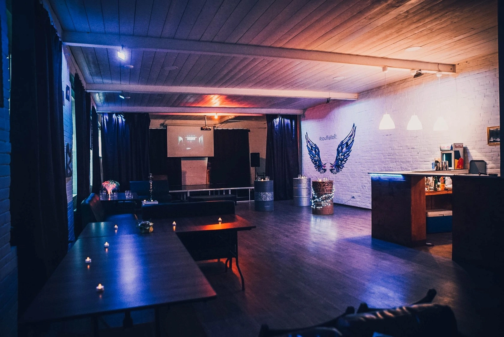 Оборудование - Проектор + экран, Флипчарт/доска, Колонки + микшерный пульт, Wifi