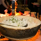 Станция с ризотто с белыми грибами, сыром пармезан и трюфельным маслом