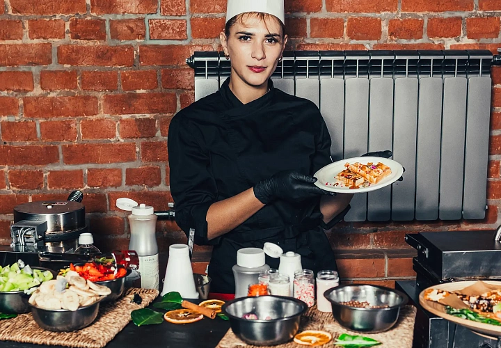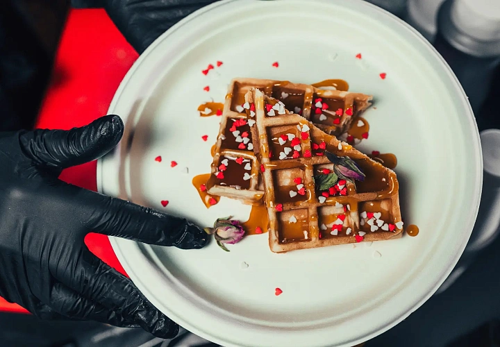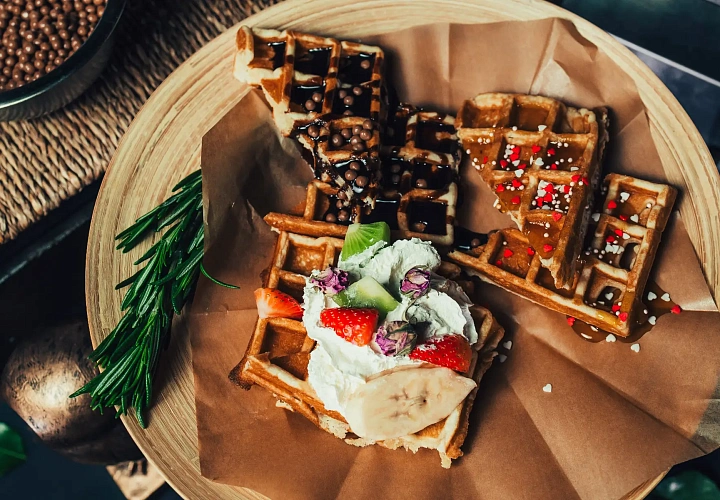 Тёплая и ароматная анимация для мероприятий любого формата – от детских праздников до поздравлений в честь 8 марта. Повар выпекает венские вафли до золотистой корочки и подаёт их с выбором классических сладких топпингов: клубничным и шоколадным соусом, взбитыми сливками и варёной сгущёнкой, предлагая дополнить порцию фруктовым ассорти.